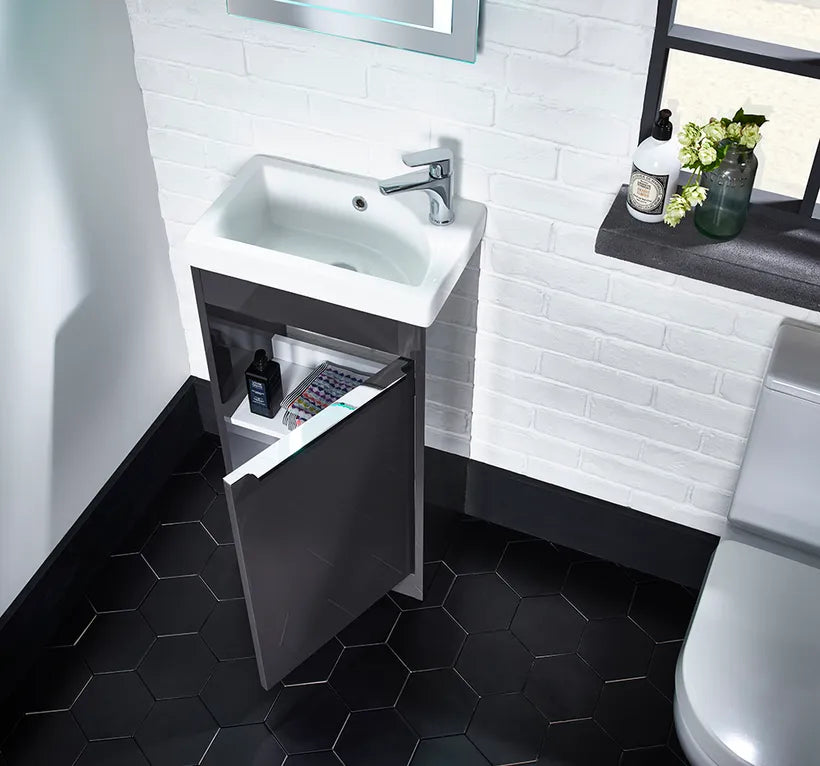 - A compact furniture unit that is ideal for cloakroom, ensuites or simply small or narrow bathroom spaces.