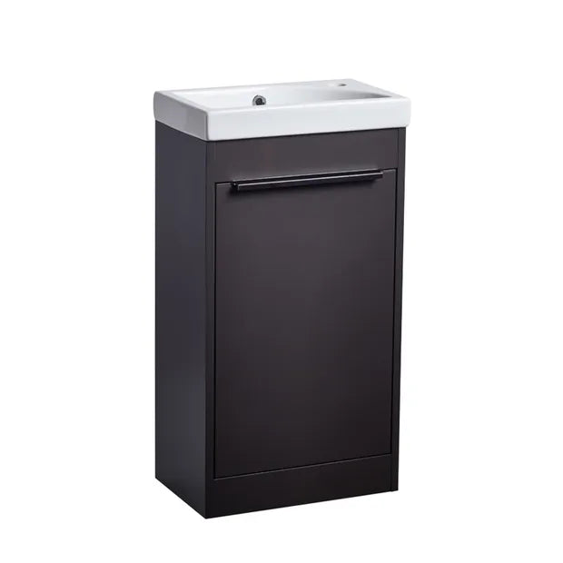 A compact cloakroom bathroom unit with a slim profile and an understated design. Available in three subtle finishes, this simple and functional furniture range features soft close doors with ample storage space to maximise on space and deliver on style. Features soft close functionality for quiet and controlled closure. for quiet and controlled closure