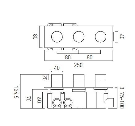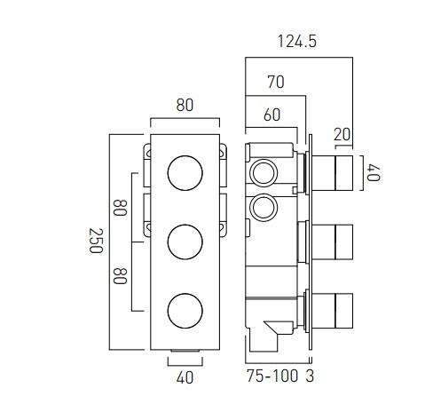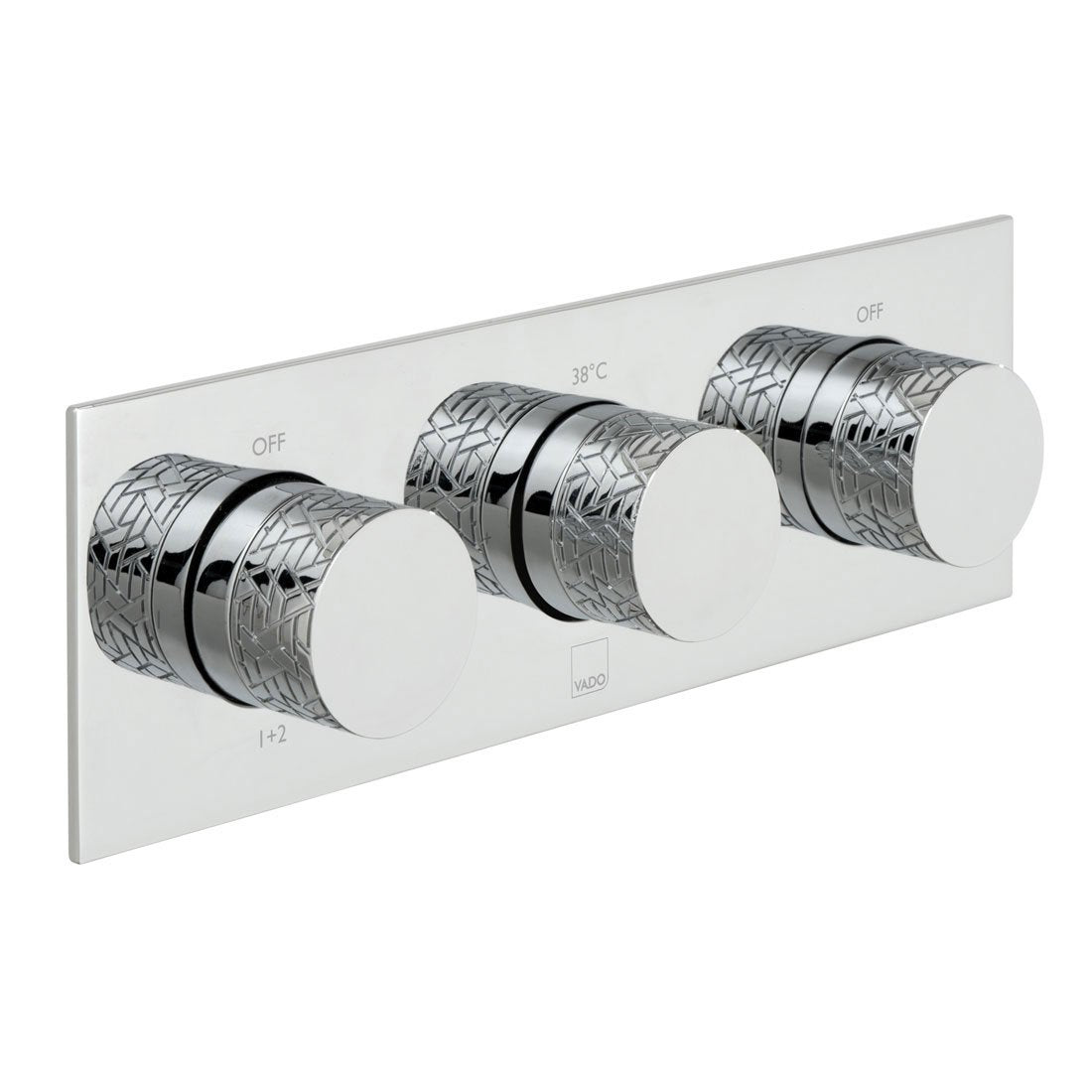 | Vado Omika Three Outlet Three Handle Tablet Thermostatic Valve - Horizontal | TAB-128/3-H-OMI-C/P |