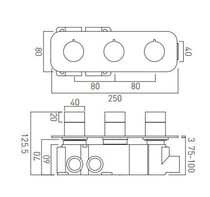 | Vado Tablet Altitude Concealed 3 Outlet 3 Handle Thermostatic Shower Valve - Horizontal | TAB-128/3-H-ALT-C/P |