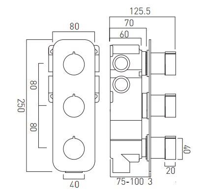 | Vado Tablet Altitude Concealed 3 Outlet 3 Handle Thermostatic Shower Valve - Vertical | TAB-128/3-ALT-C/P |